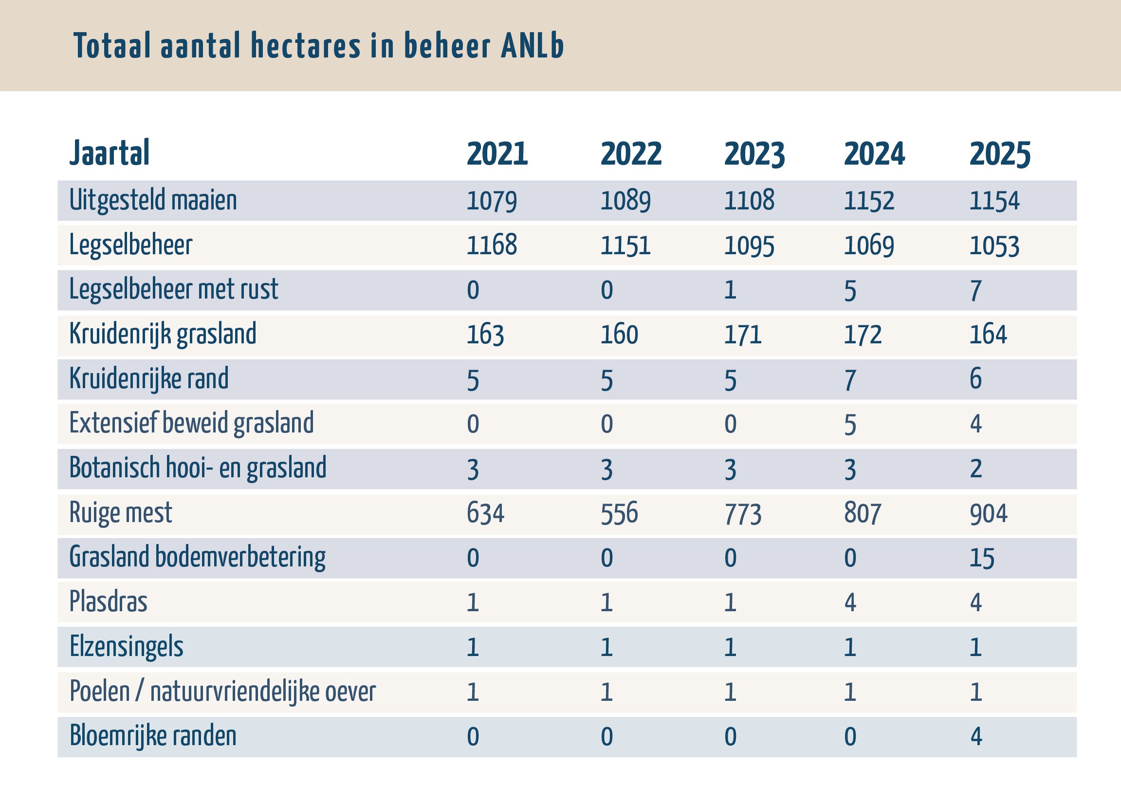 Elk eiland heeft één of meerdere kerngebieden, dit zijn gebieden waar van nature grote aantallen weidevogels zitten en waar met een samenspel van verschillende maatregelen de weidevogels op initiatief van ANV De Waddenvogels beschermd worden. Aan de hand hiervan stelt de Provincie Friesland ook de begrenzing van de leefgebieden vast waarbinnen subsidie kan worden aangevraagd voor ANLb. Er is ruim 2400 hectare in beheer, verdeeld over de eilanden Schiermonnikoog, Ameland en Terschelling. Het weidevogelbeheer op de 3 eilanden kenmerkt zich door een combinatie van nestbeschermende maatregelen, grasland met rustperiode (uitgesteld maaien) en kruidenrijke graslanden. Onderscheidend op Terschelling zijn de vele hectares hoogwaterpeil en plasdras wat zeer waardevol is voor de weidevogels. In de tabel hieronder kunt u de jaarlijkse onderverdeling in hectares agrarisch natuurbeheer zien.